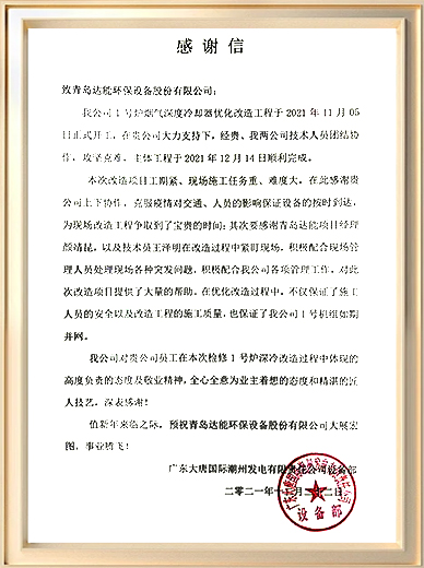 青達環保着眼于用戶設備的整個使用壽命周期,以專業技術服務能力,及時、高效地為全球用戶提供全程服務,有效解決用戶在設備安裝、運行、使用過程中所有遇到的問題。